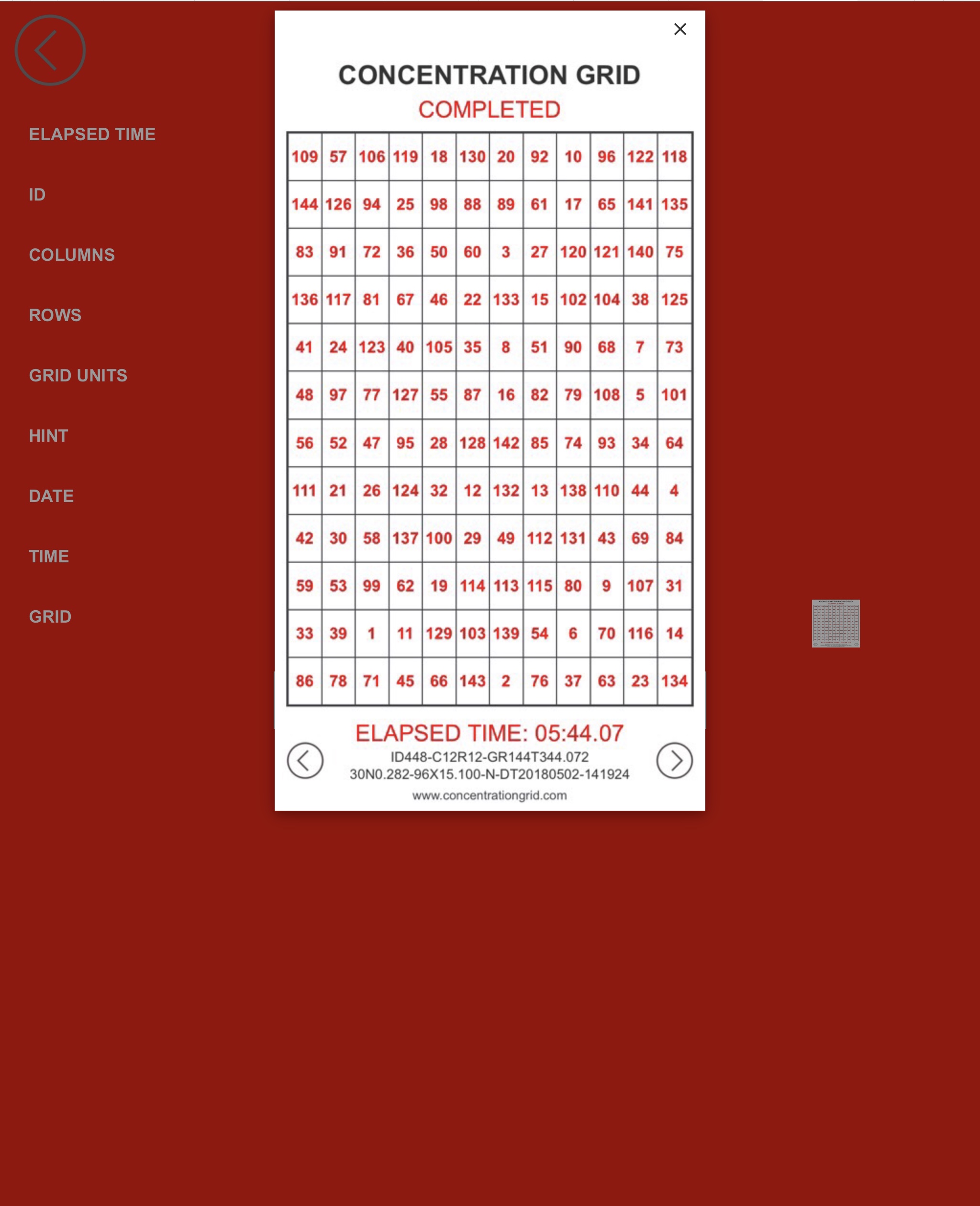 Post your completed grid image (screenshot/image file) and GRID ID to the leaderboard at the Concentration Grid community site.